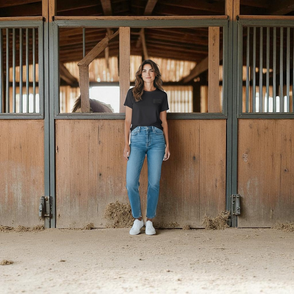 Pretty Real Leather Logo T-Shirt made of cotton. These shirts are soft and mid-weight. Logo details are dark brown. An oval PRL branded logo on the back between the upper shoulders